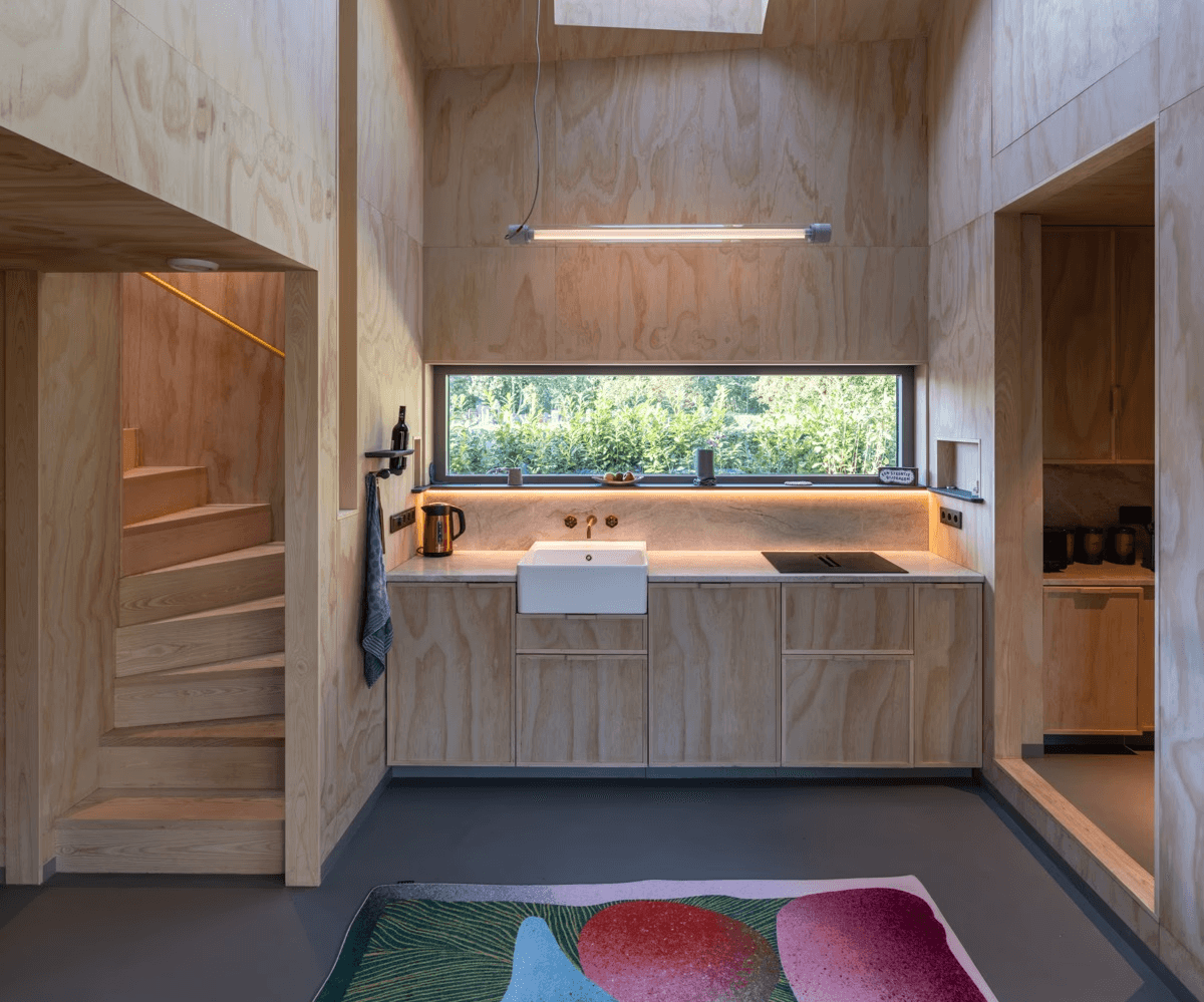 Kranen/Gille hebben het interieur op een speelse manier vormgegeven en voorzien van allerlei praktische oplossingen en mooie details. Het interieur is volledig met de hand en op maat gemaakt.